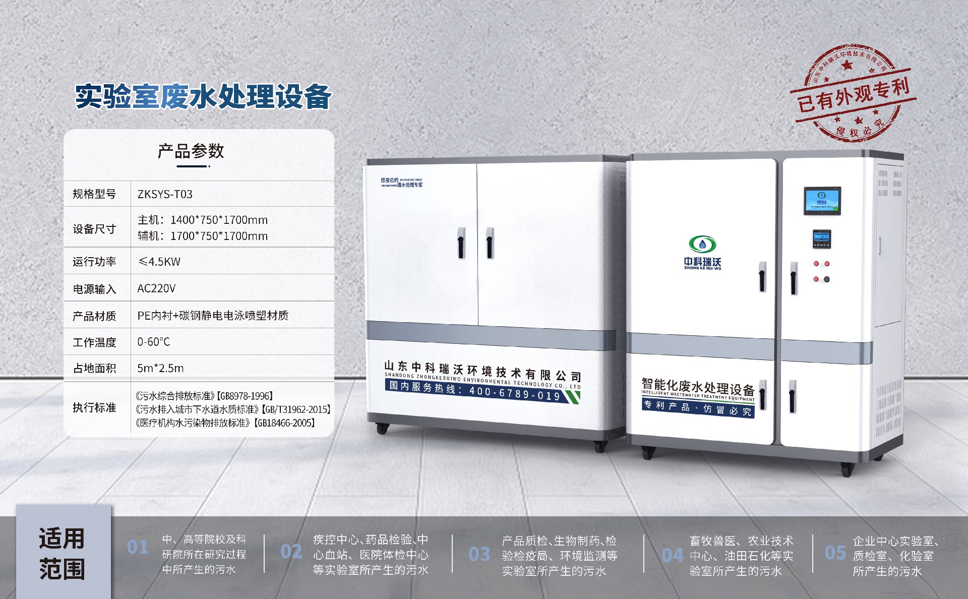 该设备被广泛应用于中、高院校、科研院所、医疗机构、生物制药、疾控中心、环监、产品质检、检疫检验、药品检验、血站、畜牧、医院、石油化工、企业等实验室、化验室的综合废水处理,凭借稳定性能,优质处理结果,受到广大客户的一直好评。