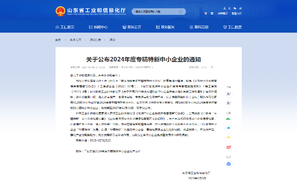 近日,山东省工业和信息化厅公布了2024年度专精特新中小企业名单,好运来彩票成功入选。