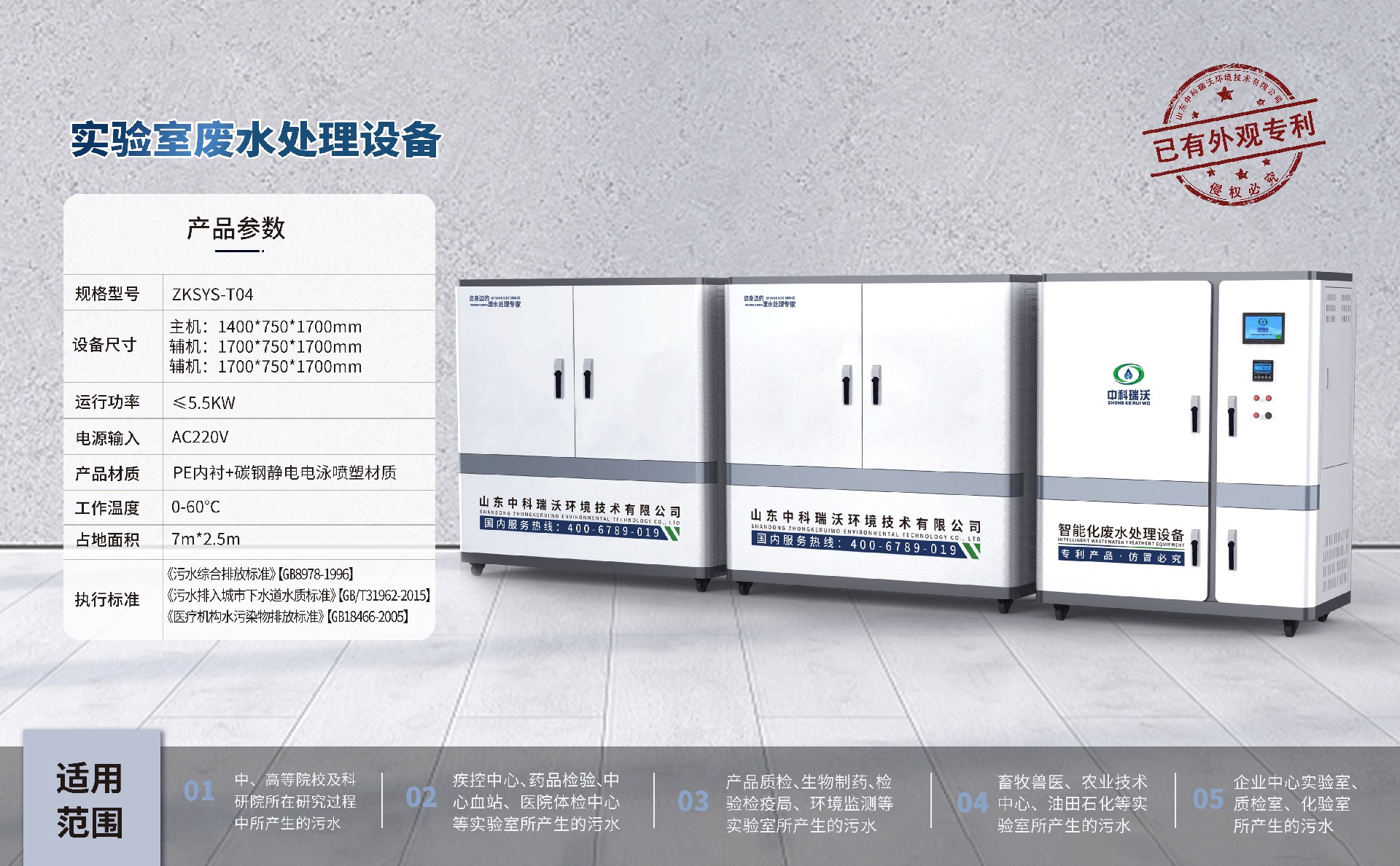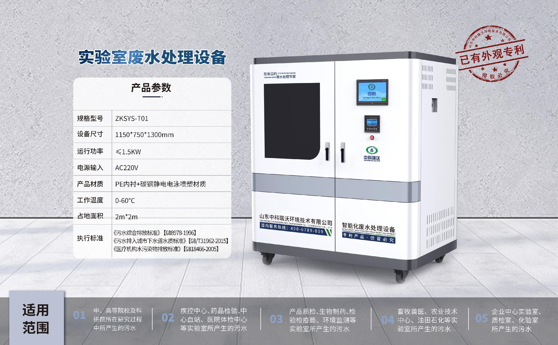 该设备被广泛应用于中、高院校、科研院所、医疗机构、生物制药、疾控中心、环监、产品质检、检疫检验、药品检验、血站、畜牧、医院、石油化工、企业等实验室、化验室的综合废水处理,凭借稳定性能,优质处理结果,受到广大客户的一直好评。